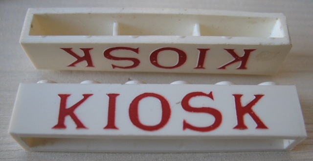 Brick 1 x 6 without Bottom Tubes with Cross Side Supports with Red 'KIOSK' Serif Pattern