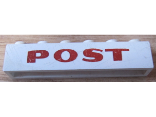 Brick 1 x 6 without Bottom Tubes with Cross Side Supports with Dark Red 'POST' Pattern