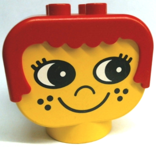 Duplo Figure Head Human 2 x 2 Base with Fixed Red Hair with Eyes Looking Left, Nose, Freckles, and Grin Pattern