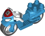 Duplo Motorcycle with Rubber Wheels, White Handlebars, Headlights, Black Spider-Man Logo on Red Windshield Pattern