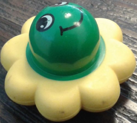 Primo Rattle Flower with 8 Yellow Petals and Smiley Face Pattern