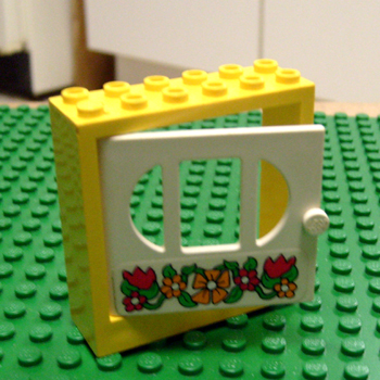 Fabuland Door Frame 2 x 6 x 5 with White Door with Flowers Pattern (Sticker) - Set 3635