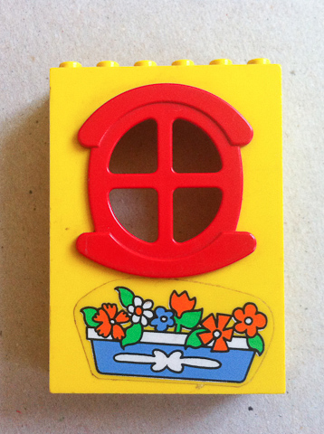 Fabuland Building Wall 2 x 6 x 7 with Round Symmetric Red Window with Flowers Pattern (Sticker) - Sets 132-1 / 341-2