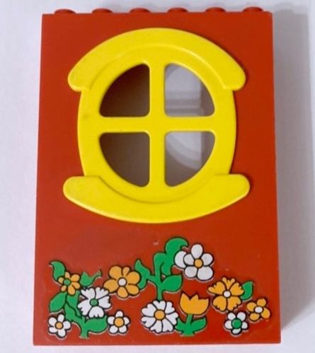 Fabuland Building Wall 2 x 6 x 7 with Round Symmetric Yellow Window with Flowers Pattern (Sticker) - Set 3665