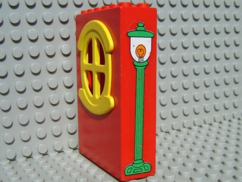 Fabuland Building Wall 2 x 6 x 7 with Round Symmetric Yellow Window with Lamp Post Right Pattern (Sticker) - Set 3665