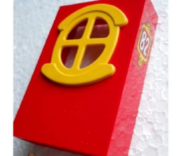 Fabuland Building Wall 2 x 6 x 7 with Round Symmetric Yellow Window with '82' on Plaque Pattern (Sticker) - Set 3682