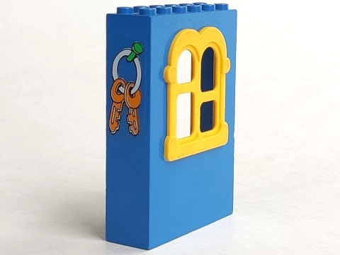 Fabuland Building Wall 2 x 6 x 7 with Squared Yellow Window and Keys Pattern (Sticker) - Set 3669