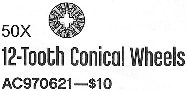 12 Tooth Bevel Gears (Pack of 50) - (12-Tooth Conical Wheels)