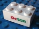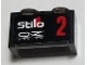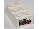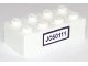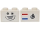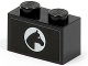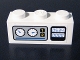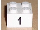 Brick 1 x 2 with LEGO Logo Open O Style White with Black Outline Pattern Catalog |