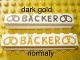 Brick 1 x 2 with Yellow Left Arrow with Black Border Pattern Catalog |