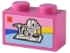 Brick 1 x 2 x 2 with Inside Stud Holder with Food Packaging Box, Farfalle Pasta on Spoon, Red Stripe and Dark Pink Background Pattern (Sticker) - Set 41704 Catalog |