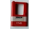 Door 1 x 4 x 5 Left with Trans-Clear Glass and Red & Black diagonal Stripe and White Helmet Pattern (Sticker) - Set 6373 Catalog |