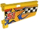 Technic, Panel Fairing #20 Large Long, Small Hole, Side A with Racing Logos on Orange and Yellow Pattern (Sticker) - Set 8146 Catalog |