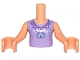 Torso Mini Doll Girl Medium Lavender Top with Castle Necklace Pattern, Nougat Arms with Hands