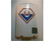 Cylinder Half 2 x 4 x 4 with Bulletin Board with Airplane Photo, Rocket Poster, 'NEWS', Medals, Award Ribbon and Padlock on Dark Blue Checkered Background Pattern (Sticker) - Set 41343 Catalog |