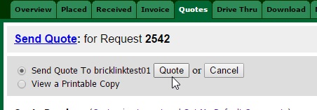 Wenn Sie sich dazu entschließen, das Preisangebots-Feature in Ihrem Lager zu verwenden, müssen Sie es erst unter My Store Settings aktivieren. Unter ihrem Reiter My Quotes können sie den Wert für jeden Artikel festlegen, wie zum Beispiel Versand und Versicherung für angeforderte Preisangebote. Das Anwählen von "Submit Changes“ auf der Seite ihrer erhaltenen Anfragen bedeutet NICHT das sie ein Preisangebot an den Käufer senden. Einen "Quote" senden: Klicken sie auf die "Send Quote"-Symbol neben ihrem "Mail"-Symbol auf ihrer My Quotes -Seite um auf die "Quote-Vorschau/Senden"-Seite zu gelangen