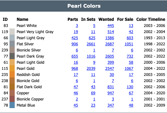 of LEGO itself to recognize *and* use these colors. Peeron recognized them in