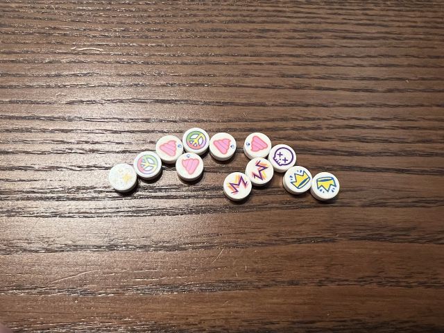 extra random printed white 98138 Tile, Round 1 x 1. There are 16 possible printed