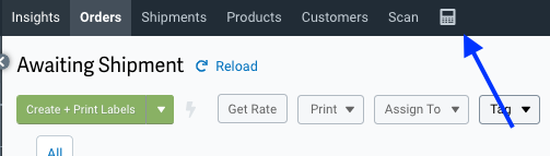 On ShipStation.com find the small calculator icon at the top middle of the page.