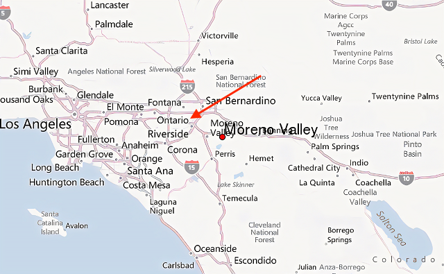 Moreno Valley to Florida. (Red Dot is the city not address)