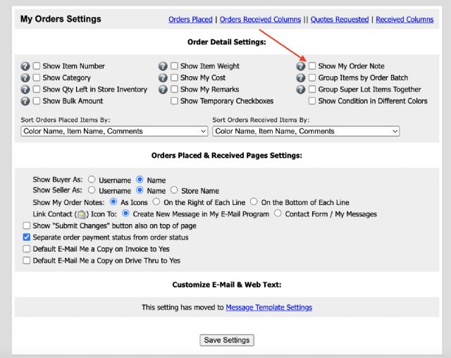 "Show My Order Notes".