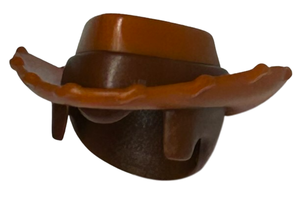 49514pb01 Minifigure, Hair Combo, Hair with Hat, Short Hair with Molded Dark Orange Cowboy Triangular Brim Hat with Reddish Brown Band Pattern Parts: Minifigure, Hair {Reddish Brown}