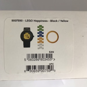 I got a watch with "9007590 - LEGO Happiness - Black / Yellow" written