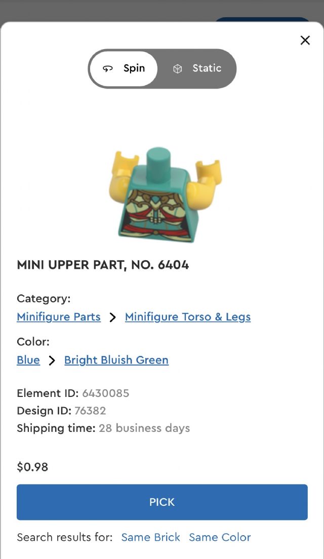 undoubtedly look at the image of the part in the rendered pick-a-brick images