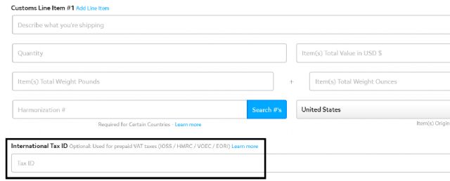 shipping label. The black box is where the Bricklink IOSS number must be entered.
