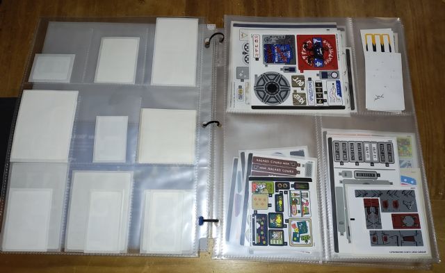 I use baseball card protector pages (9 slots to a page) for the smaller stickers