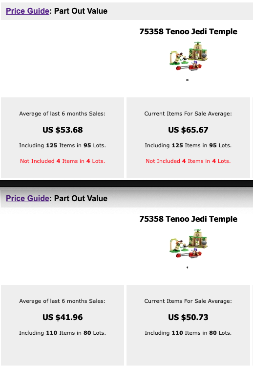 Becoming familiar with “Part Out Value” feature and “On Wanted List” numbers