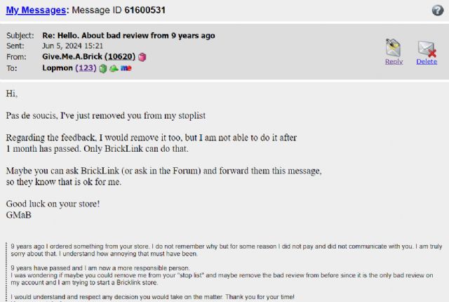and society forgives you eventually. But Bricklink? Oh no, make one mistake here