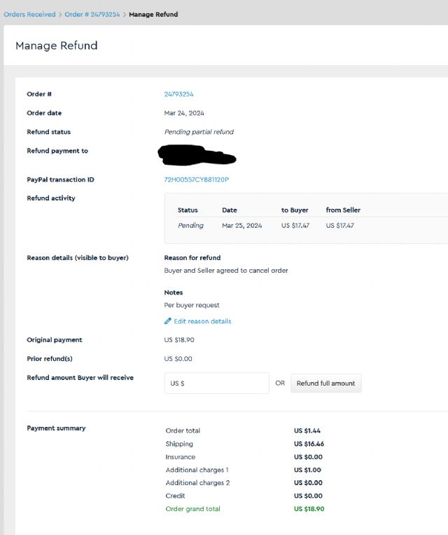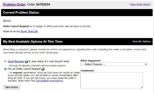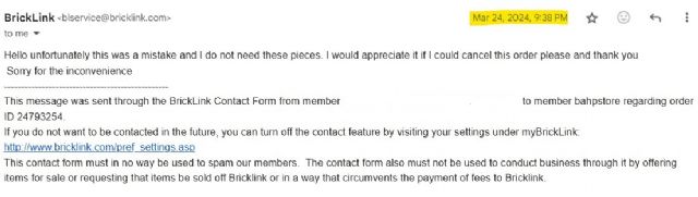 We tried to issue refund through Bricklink first, even used "Buyer and Seller