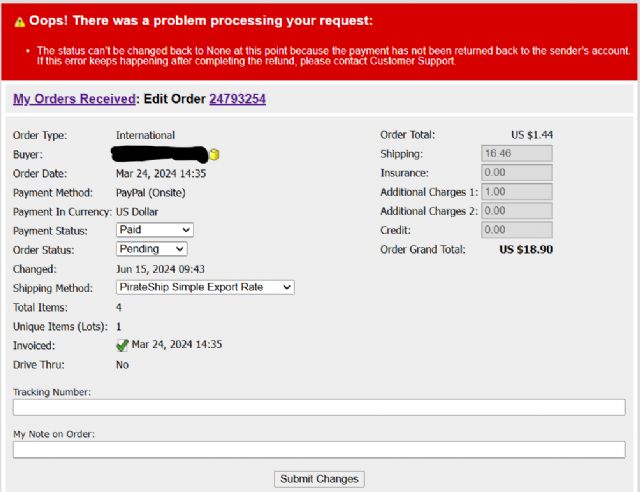 So we lost -$1.43 and got a whole lot of trouble from the buyer. At least one