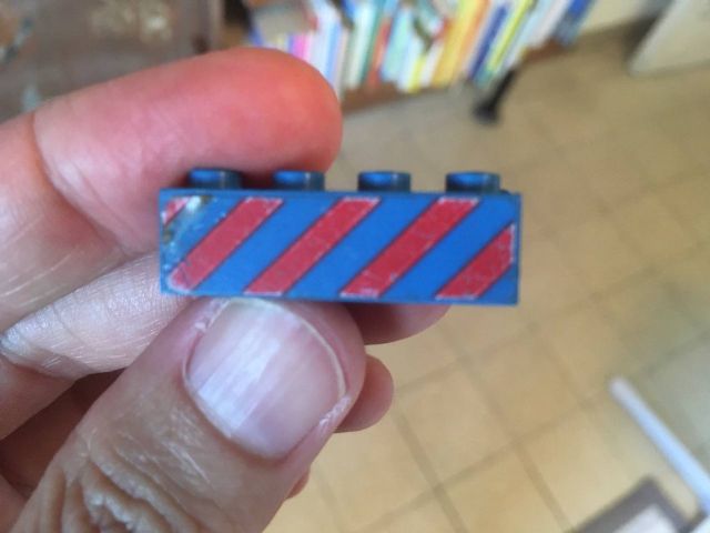 look right. The red is worn at the edges, whereas the blue is not. If the red