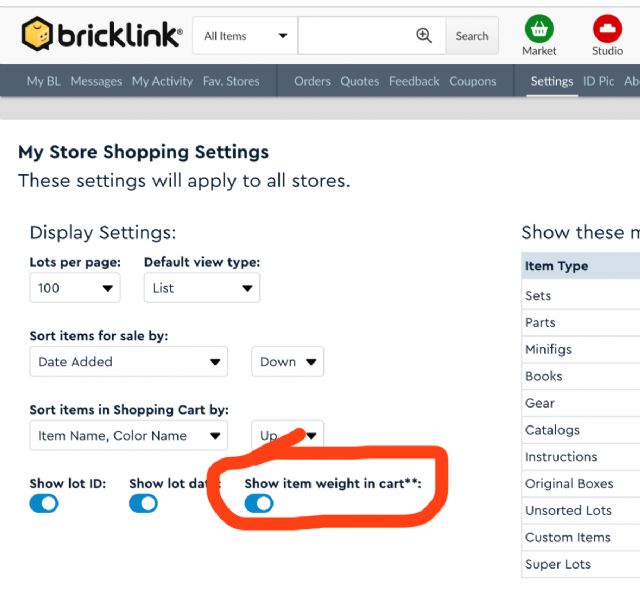 item weight button.