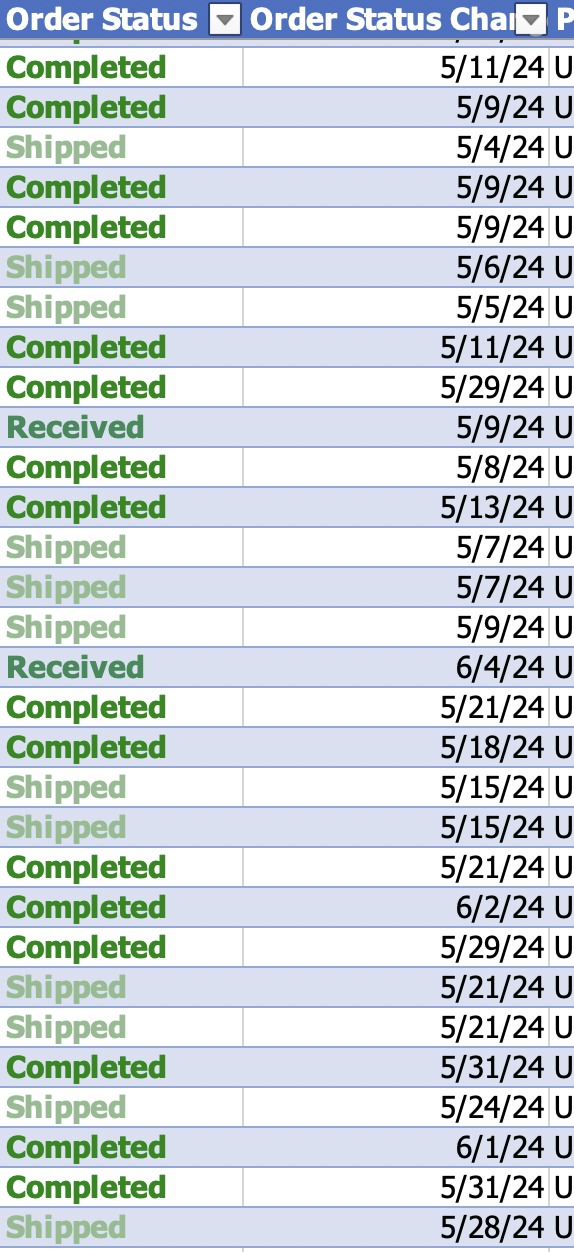 +1 every week (or several weeks) I have buyers mark orders from many months ago
