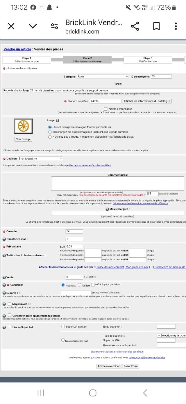 Je rempli prix et quantité et si il est neuf ou pas et que je clique sur valider