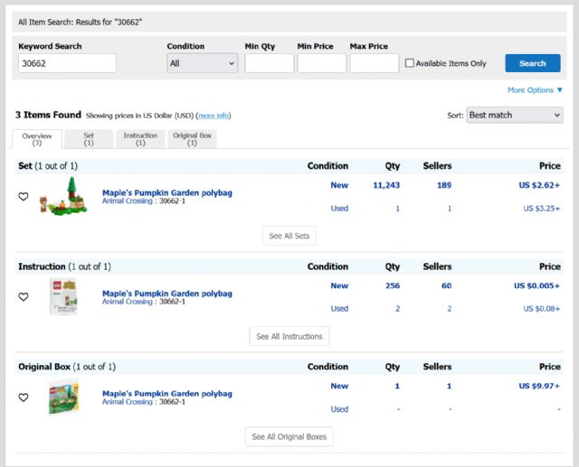 noticed one set, the empty polybag is worth more than a sealed set. Jus thought