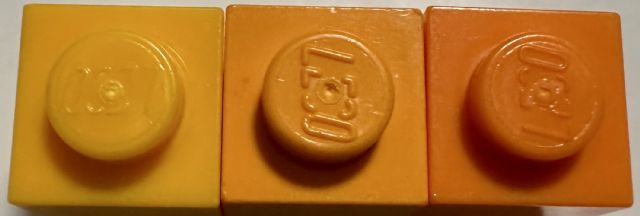Brick on the right is orange and the Brick on the left is bright light orange.
