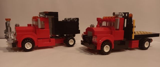 show everyone the mocs I build. Here I have two of my trucks I have built, the