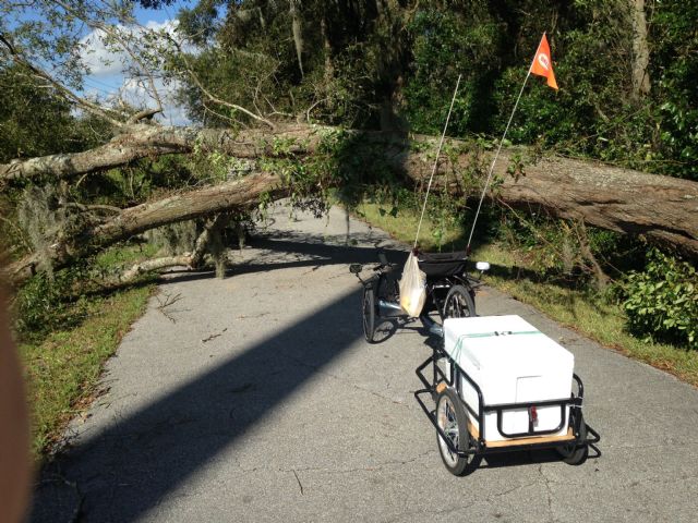 blockages on the multi-use trail had to be circumvented (including one downed