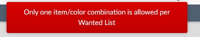 is allowed per Wanted List. Even when trying to edit a list with a grand total