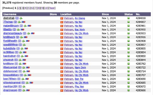 The Vietnam member saturation, seems to involve getting URLs (in the member's