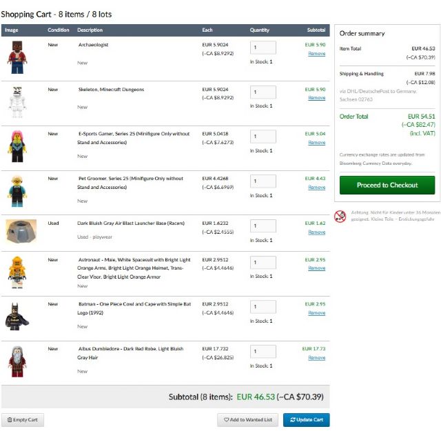 So I decided to take a closer look at the THE.BRICK.TIME cart. The fees were