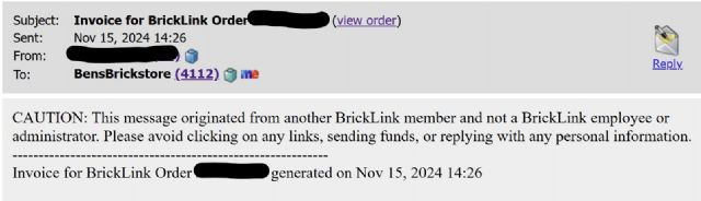 BrickLink put a caution message on our invoices telling buyers not to pay? That's