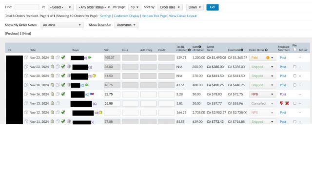 For example the last Order was $1,400.00. I am not selling "parts". Generally