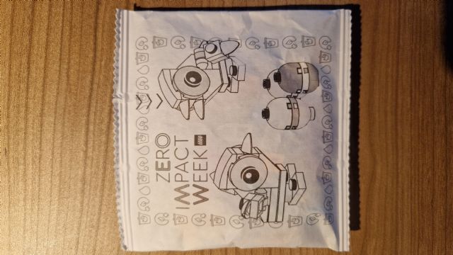 I have this very rare paper bag from the Lego Zero Impact week, but could not