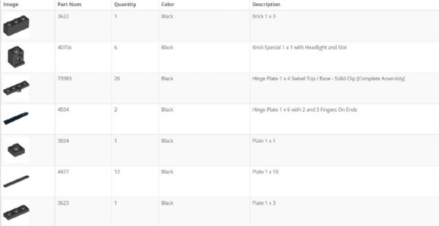 similar to below? at the minute I have to copy everything to Rebrickable to be