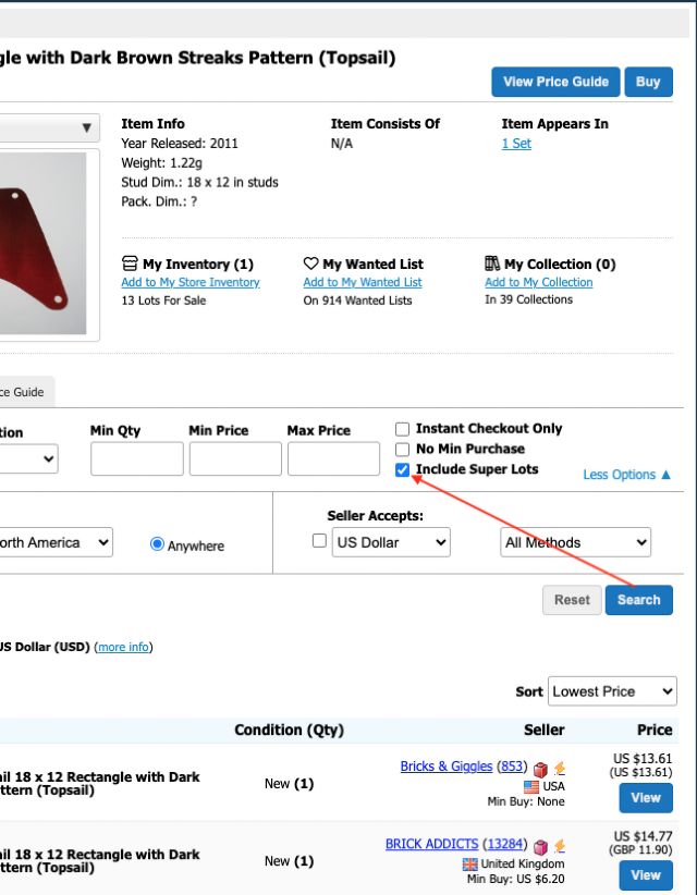 the “Include Super Lots” box, before hitting the Search tab. Otherwise
